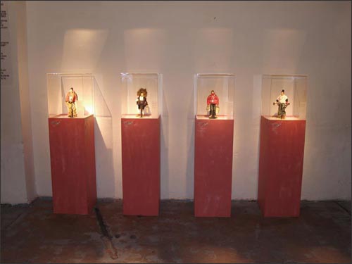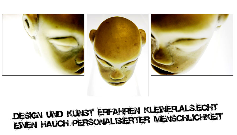 Durch die starke visuelle Präsenz der Figuren wird der Betrachter in deren Bann gezogen und erkennt sich selbst „kleiner.als.echt“ durch des Spiegel des Maßstabes 1:6.